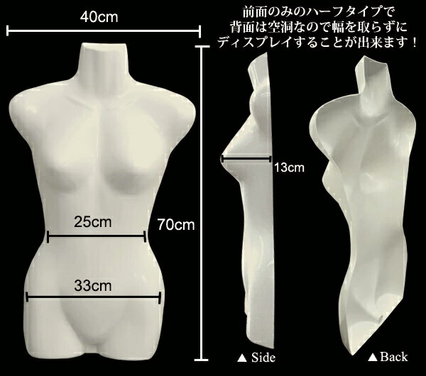 (メール便不可)洋服やアクセサリのディスプレイに最適!婦人用前面ハーフトルソー シャツなどの衣類やアクセサリなどを着用させることができます。
