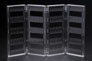 サイズ(約) (広げた状態)幅43.0×奥行き2.0cm×高さ27.2cm (折畳みの状態)幅11.5×奥行き7.8cm×高さ27.2cm 重量(約) 360g 素材 メタクリル樹脂 製造国 台湾 メーカー TAI MEI ACRYLIC CO.LTD. ご注意 ※ボディピアス用ではございません。