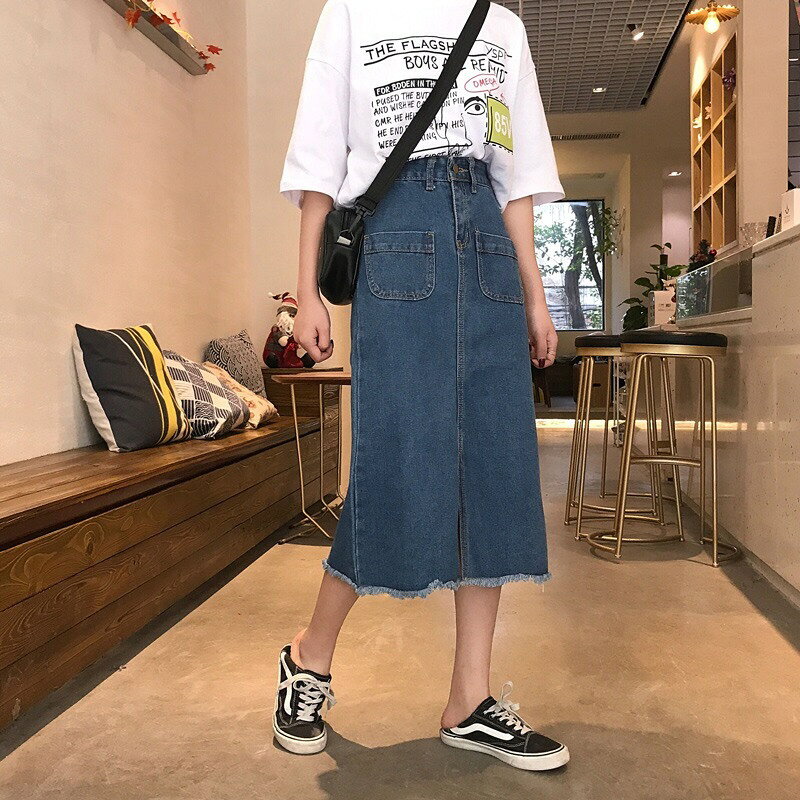 【送料無料】韓国風スリットのロングデニムスカート 柔らかい生地 通勤 学生 カワイイ 膝下 歩きやすい カジュアルコーデ 独特なデザイン レディース 人気商品 オシャレ ファッション[夏 春 秋] デニムロングスカートで女性らしさを演出〜 3